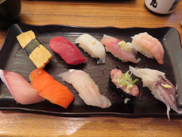 午前9時半に買い物に。10時半には金沢駅へ。先日のふるさと回帰フェアで出会った若者と待ち合わせ、富来に向かう。12時前に着いたので、西海漁港にある「西海丸」でランチ。おまかせ(上)セット1,430円(税込)をいただく。12時を回るとお客様が徐々に増えていきました。この界隈では貴重な食事処。近くの空き家の中をご覧いただく。1階は先日学生諸君が泊まったので、きれいに掃除されていて素晴らしい印象です。港側の部屋の床の間と壁の一部に亀裂が入っているので、要補修ですが、DIY可能です。2階の洋室はクロスなどを張り替えることで見違えるようになるのではないかと感じました。その後、アスクで寺岡さんと面談。別の空き家と赤崎に新たにできたゲストハウスを確認に。富来商工会にも立ち寄り、北事務局長とも話していただく。鵜野屋経由で穴水へ。買い物をして能登事務所へ。 | ![]() 西海丸の寿司 |