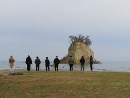 8時15分にはセミナーハウス山びこへ、本日も神戸学院大学の学生さんたちと一緒に活動。珠洲市の農業法人すえひろへ移動し、午前中は小豆の選別作業をお手伝い。当方は末政さんと人の問題を議論。スタッフが高齢化しており、次なる担い手確保が最優先課題とのこと。水田に引き込む水が少ないことが気になるとの話でした。今年の冬は結局雪が少なかったのではないか。それと、地震と豪雨災害により、水の流れがいろいろできて、山や森から水が出やすくなって、溜められている水が少なくなっているのではないかと危惧されます。12時には、飯田町のろばた焼あさいに移動し、ランチ。事前予約してありましたメニューに加えて、具沢山のスープと能登かきを注文。食後は飯田町のいろは書店、ホビーつぼのを訪ねる。坪野さんからは、震災当時の話や、奥能登国際芸術祭に出品された作品も見せていただきました。次に宝立地区に移動し、往還寺で住職からお話をうかがう。最後は見附島をごらんいただき、見送る。 | ![]() 見附島を眺める学生たち |
