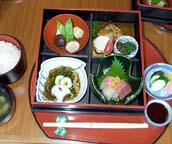 しんとく 加賀の橋立漁港の目の前にある魚料理の店。漁師が本業のマルヤ水産の経営だから素材は安心。安いメニューを単品で注文できる。客の注文に応じていろいろな料理をして下さいます。1階では魚を販売していますので、そこで選んだ魚を調理してくれる。社長の湯谷(ゆうや)さんのお話も面白い。 ●石川県加賀市田尻町浜山2-11 TEL 0761-75-2013 |