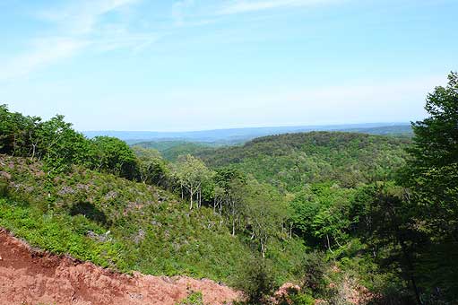 | ■鉢伏山のブナ林(能登町) 能登町と輪島市の境にある鉢伏山は「森林浴の森・日本の自然100選」にも選ばれ、「石川の森林50選」にも選ばれています。ブナが道路沿いに沢山生えており、手にとるようにして見られるブナ林として親しみやすい。森に中には大きなブナの木もあるようで、そこまで行くルートもあるとのこと。山の主とも言える坂下さんに案内いただくのが一番魅力的な楽しみ方です。頂上には三角点があり、国土地理院の人が5年ごとに様子を見にくるとのこと。頂上一帯にはかつては寺院があったと言われているが、それらしく平たい土地が広がっています。鉢伏山から高洲山へは近道があります。