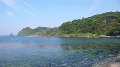 | ■木ノ浦海岸(珠洲市) 自然林に囲まれた入り江が木ノ浦海岸。入り口の両サイドに大きな岩があり、入江の水は澄んでおり、海底が見えるくらいです。天気が良ければ、きれいな青色の海を眺めることが可能。国民宿舎きのうら荘や民宿があり、人気の高いニ三味珈琲もあります。