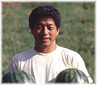 皆口和寛 能登半島の先端、珠洲市で農業を営む。「みんな口」といわれるほど、話が面白い人。高台でつくっているスイカは甘い。スイカは葉っぱを大事にすると美味しくなる。きれいな葉っぱを育てることがスイカづくりの秘訣とのこと。葉っぱ50枚で1個のスイカを付けることがよい!種づくりからしてきた大納言小豆も、丹波の豆に匹敵する。 ◆石川県珠洲市正院町岡田10部1番甲地 みなくち農園 TEL 0768-82-5285 |