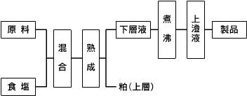 新鮮な原料を高食塩濃度の環境のもとで『自然熟成』させてつくられます。 晩秋から初冬(11月頃)にかけて仕込み、翌年の晩夏から初秋にできあがるのが一般的ですが、商品として生産されるものは、通年仕込んで通年店頭に並ぶようになっています。 |