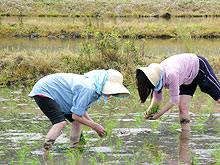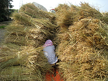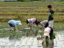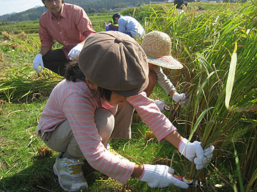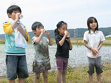 さて、今年も無事に米づくりを終えました。2年目の米づくりを振り返ると、作業工程がわかっている分、少し余裕ができて、去年見えなかったものがおぼろげに見えてきました。と言っても、私たちが行なったのは、田植え、稲刈り、脱穀の作業だけですが・・・。それでも、春には裸足で田んぼに入り、こんなにも多様な生物がいるものなのかと感動し、夏を迎える前は、なかなか梅雨が明けな〜い(T T)と天気をうかがっていました。実りの秋が近づけば、人の田んぼの出来が妙に気になりだし、お米への愛着や関心が増したことは確かです。