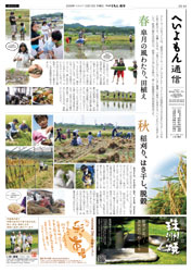 パッケージと一緒に、「へいよもん通信(かわら版風)」も制作しました。田んぼの様子や、米づくりへの思いをつづっています。田んぼの中で楽しそうに作業し、遊んでいる子どもたちの様子もご覧ください。(上記PDFからご覧になれます。)