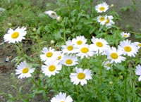033-ガッシリしたマーガレット 会社横の駐車場脇に咲いたマーガレットは、我が家で咲いているのと違って、茎丈が短く、いかにも「栄養あります」って雰囲気を醸しています。金沢は土が良いから育つんでしょうね。住宅地の隅にわずかに残る畑なんかも黒々としています。栽培適地と宅地化のコントロールって、将来の日本の食料自給率のために誰も考えなかったんですかね、もう遅えけど。(2006.06.13.Tue) |