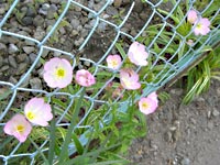 030-フェンス際の昼咲き月見草 西金沢駅から1コめのバス停に行く途中。西金沢駅前の花壇にも植わってましたが、こうしてフェンス際でがんばってるところを見ると宿根草でしょうね。Webでちらっと調べた感じでは、昼咲きじゃない月見草は白いもののようなので、この写真のタイプは富士によく似合うのとは別ものでしょう。(2006.06.08.Thu)※なんて書いたこの日、桜桃忌を前に縁りの方の事故の報が。シンクロニティというのはやはりあるものです。(2006.06.09.追記) |