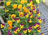 035-元気色のビオラとパンジー 西金沢駅からのバスルート近く、住宅街に少し入ったあたりです。こんもり咲いて、色合わせも元気いっぱい。自分の家で育てると茎ばっかりひょろひょろ伸びて、こんなかわいらしくキュッとまとまらないのだ〜。こまめに日なたに移動とかすれば良いんでしょうけどね。(2006.06.19.Mon) |