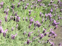 032-どうやらラベンダー 西金沢駅から1コめのバス停付近、ちょっと裏通り方向へ入ったところのお宅の庭先。花の先端の開き方が特徴的ですが、どうやらこういう咲き方のラベンダーもあるようです。それとも開花段階でこんなかたちのときもあるのかな。まぁともかく、色は確かにまさしくラベンダーっていう感じのカラーでした。(2006.06.12.Mon) |