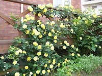 029-黄色のバラ 会社最寄りバス停から1コ手前の泉新町で降りたところの近く。何年くらいでこんな大きさに育つんでしょう。ちなみに写真を撮りに行ったとき、ちょうどこの真ん前で睨みのきいた軍団グラサンのおっちゃんがしゃがみ待ちしてたので、時間潰しに近所のパン屋に行くと、パン屋の社長を尋ねてそのおっちゃんがやってきた。という訳で、このラブリーなバラを育てているのは、睨みのきいたおっちゃんなのかもしれません。(2006.06.06.Tue) |