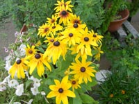 040-プランターのルドベキア これも夏らしい、元気いっぱいなビタミンカラーです。梅雨の北陸の薄暗い空の下でパキッと目立ってました。(2006.07.06.Thu) |