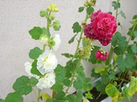 041-プランターのタチアオイ タチアオイのイメージって、かんかん照りの下で夏・真っ盛りに咲いているイメージでしたが、改めて見ると今頃の季節からなんですね。その昔、お隣富山の福光へ行ったとき、そりゃもう田んぼ脇や畑の横、民家前と、あっちこっちの道路に面して行けども行けどもタチアオイだらけで、もしや当地では「タチアオイ皆んなで植えまくろう運動」でも展開されたのか?と思わされた記憶がありますな。(2006.07.07.Fri) |