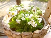 080-町内栽培(たぶん)の鉢花 無理やり花を1点載せてみた。友だちのお母様が、還暦を過ぎて一念発起、エステサロンを開業し、そのお披露目会でお土産にいただいたお花。たぶん近所のフラワーセンターで栽培された地場ものです。ウッドの鉢カバーは、ここ数年この窓際に放置してあったもので、少々大きいけどすっぽり収まりました。しばらくガーデニング離れだったので、やっと出番がきたのぅ。(2007.12.12.Tue) |