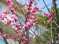 084-中学校の八重咲きのウメ 最近の学校は許可無き者の立ち入りには敏感だろうなーと思いつつ、会社の隣の中学校の正面玄関に接近を試みたところ、“石川県師範学校跡地”の石碑に初めて気が付いた。石碑の背面は10年以上毎日見えてたんだが、「それは知らかった」と感心。ただ、ウィキペディアによると移転や改編が多かったようで、どうも跡地は県内あちこちにありそうであった。写真のウメは中学校のなんだけど、背景の校舎は小学校。(2008.03.29.Sat) |