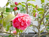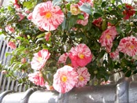087-今年の斑入り椿 会社の近所の椿が今年も咲きました。毎年花付きがよく、木全体に、ざかざか咲いています。(2008.04.04.Fri) |