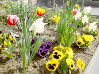 096-団地の花壇 パンジー、チューリップ、スイセンと、いかにも春らしいです。(2008.04.22.Tue) |