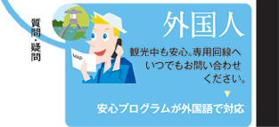 外国人宿泊客が旅館内あるいは外出中に困難に遭遇した場合、"安心ホットライン"が可能なかぎりの支援をいたします。