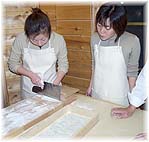そば打ち体験(白山市・鳥越) そばの栽培から行っているのが鳥越村の三ツ屋野地区。そばの花畑で一躍有名になり、昨年末には体験とそばが食べられるにわか工房が出来ました。予約するとそば打ち体験ができます。詳しくはにわか工房 ■にわか工房 白山市三ツ屋野ト3-7 TEL 0761-95-5930 |