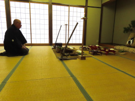 朝4時半には起きて、金沢駅までお迎えに行かれるのを見送る。再度寝て7時すぐに起きて昨日の残りで朝食。8時には、昨日来た学生さんを連れて能登事務所を出て、山口集会所へ。あえのことのお手伝いと見学をさせていただく。12時前には、金沢駅集合でやってきた参加メンバーも揃い、昼食を全員でいただく準備から手伝い。恒例のカレーライスをご馳走になりました。午後3時からあえのことの神事が始まり、地域の人たちが進行されるのをすこしずつ手伝い、撮影させていただく。床の間に飾れた俵の上におかれたよりしろの榊を扇子に乗せて囲炉裏端に運び休憩いただく。その間にお風呂の湯加減を見に行かれた後、お風呂に案内。再度囲炉裏端で休憩いただいた後、座敷に設けられた御膳の前に案内。口上を述べた後、料理や供え物の説明。甘酒を注いで食事に。しばらくして、榊を扇子に乗せて田に案内する。田んぼの中に設けられた大きな松の根本に田の神様をお送りして神事は終了。集会所に戻り、全員で準備をして、直来です。祭主、当方、ご住職と挨拶があり、懇談となりました。17時前には、学生たちの何名かは帰るので、車で帰路に。私ともう一人の学生葉、おくのと市で買い物をして能登事務所に戻る。10時には、金沢駅まで送った2名が戻り、酒を少しいただいて就寝。 | ![]() あえのこと |