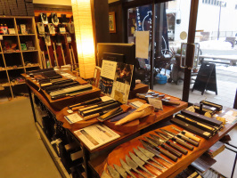朝はゆっくり起きて、11時過ぎに能登事務所を出てのと里山空港駐車場にあるNOTOMORIで学生さん2名と昼食。能登事務所に残りオンラインミーティングに参加されていた社会人さんが到着されたころには昼食も終えるところでした。本日帰るメンバーを乗せて金沢駅に向かっていただき、当方は明日まで滞在希望の学生さんを千枚田に案内すべく輪島へ。千枚田では、下の方まで歩いていく。次に珠洲市の角花さんの塩田を眺め、大谷地区を紹介して、木ノ浦海岸へ。山中を抜けて飯田町へ。わくわく広場の駐車場でオンラインミーティングに参加。終了後いろは書店で合流し、コーヒーをいただき、だいまるで買い物。宇出津に移動し、ふくべ鍛冶へ。学生さんの希望でお邪魔しましたが、ふくべの銘入り包丁を購入されました。料理に関わる仕事を目指している方は違いますね。事務所に戻り、いろりを囲んで夕食。 | ![]() ふくべ鍛冶で |