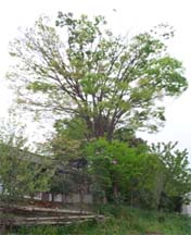 | 5月2日(水) 午前中、井口村に行く。城端と井波の間にある小さな村で、緩やかな斜面に家が点在する。藤田さんという古い家を訪問。神戸で修業してきたお嬢さんがケーキ屋さんを始めるにあたっての相談である。8月8日に開店日を決める。目の前に水田が広がり、綺麗な夕日が望めるのどかな農村に誕生するケーキ屋さんはそれだけで情報価値がある。庭には大きなけやきが生えていた。 | ![]() 大きなけやき |