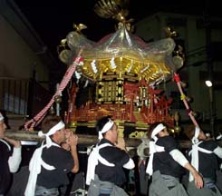 | 5月14日(月) 夜、教育委員会に寄った後、城端に向う。8時半前には着いたので、宵祭りの雰囲気を味わうことができた。山宿に飾られた6つの御神像を拝見して回る。明日は、山に登られる神様たちだ。途中、庵唄を歌う若い衆に出会う。ほの暗い中をちょうちんで道を照らしながら進む一団に風情が感じられる。歴史を感じるお祭りだ。 | ![]() 五番山の布袋 |