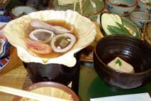 | 5月5日(土) 昼、別所の竹の子料理を食べに出かける。毎年恒例の行事。いつもの、高窪崇行さんのところに(本家は上の道路に面しているが、崇行さんのところは内川農協の前を下ったところ)。いつ食べても、えぐみがなくて、食べやすい。味付けも丁度だ。どこの農家でいただいても、一人前2,500円。高窪さんの電話は076-242-5979。たくあんも美味しいので土産にする。帰りに近くの埋蔵文化財センターと内川運動公園による。いずれも沢山の人が訪れていた。近所で空気の綺麗なところだ。 | ![]() 竹の子料理 |