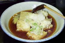 | 9月5日(水) 南砺地区の観光ポイントめぐり。福光、井口、城端、五箇山を回る。福光では棟方記念館、福光美術館、IOXアローザ、井口ではゆーゆうランド花椿、椿ガーデン、城端では曳山会館、善徳寺、五箇山では相倉合掌集落、和紙の里、合掌の里を見学。スタッフや関係者のお話が面白いところは魅力的です。椿博士のお話を特に良かった。最後に上平村のくろば温泉のれすとらんくろばで夕食をいただくが、五箇山とうふの揚げだしとうふが美味しかった。おすすめです。 | ![]() 揚げだしとうふ |