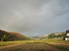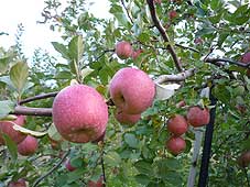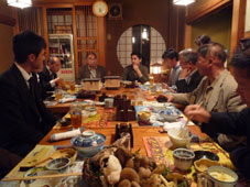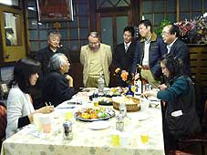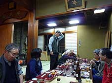 ![]() 沢井果樹園のりんご | ![]() 夜なべ談議の様子 | ![]() 夜なべ談議の料理 |