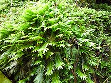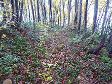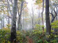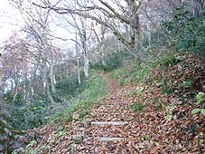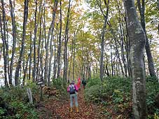 ![]() 杉林からの眺望 | ![]() 苔の密生地帯 | ![]() ブナ林を進む |