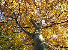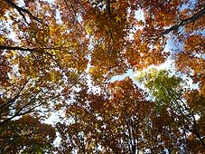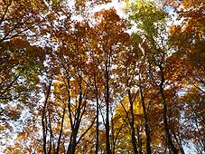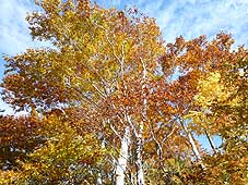 ![]() きれいなブナの紅葉 | ![]() 紅葉し始めたブナの大木を下から望む | ![]() 山全体が紅葉しています(対岸の山) |