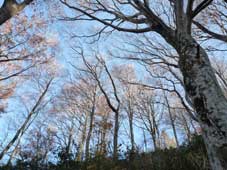 ![]() たまごかけご飯ときのこ汁の朝食 | ![]() 最初に出会うブナたち | ![]() 青空に映えるブナ林 |
