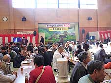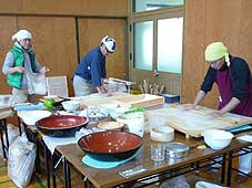 ![]() そばまつりのそば | ![]() そばを打つ若者たち | ![]() 会場内の様子 |