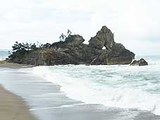 ![]() 虹がかかった鉢伏山方向 | ![]() 波が押し寄せる窓岩 | ![]() 塩サイダー丼 |