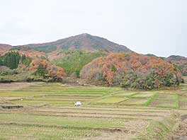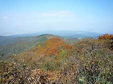 ![]() 能登富士・高爪山を望む | ![]() 赤と黄の葉が混ざったヤマモミジ |