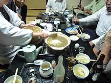 ![]() 最初の一杯 | ![]() 初物の香箱蟹もいただきました | ![]() 鍋におひつからご飯を入れて |