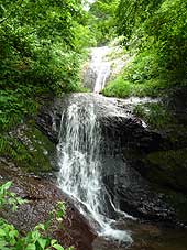 ![]() 最初に出会った大きなブナ | ![]() ゆがんだ顔に見えるブナ | ![]() 鍋谷のブナ林 | ![]() 三段の滝 |