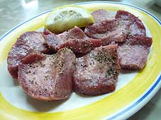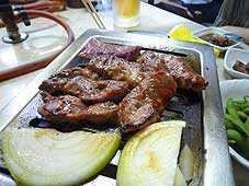![]() 板門店の焼き肉スタイル | ![]() 肉厚のタン | ![]() 韓国冷麺 |
