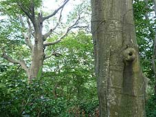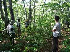 ![]() 鉢伏山の大きなブナの根元で | ![]() ブナ林の中で過ごす | ![]() ブナの実 |