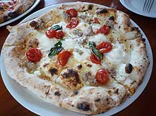 ![]() 前菜のサラダ | ![]() マルゲリータ | ![]() もう一つのピザ |
