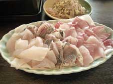 ![]() お刺身3種盛り | ![]() かわはぎのたたき | ![]() かわはぎのきもの味噌汁 |