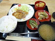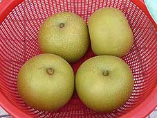 ![]() 朝市に出品されていた梨 | ![]() 野菜を間にした会話も楽しみ | ![]() 昼食はだんだんでいただきました |