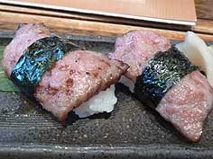 ![]() 五箇山荘でのこきりこ披露 | ![]() いわな寿司 | ![]() 飛騨牛のにぎり |
