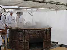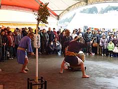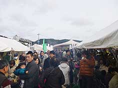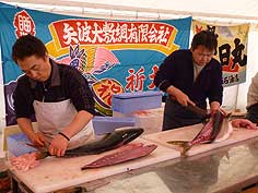 ![]() 寒ぶりの解体ショー | ![]() 弥栄(いやさか)太鼓 | ![]() にぎわう会場 |