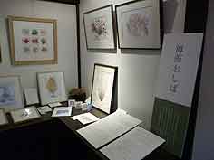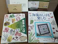 ![]() しら井本店2階の海藻おしばギャラリー | ![]() 海藻おしばについての書籍も | ![]() ハガキやしおりも販売 |