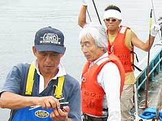 ![]() 交流会で挨拶される佐藤仁氏 | ![]() 漁船に乗せていただいた漁師さん | ![]() 慶明丸の女将・三浦さき子さん |