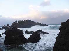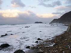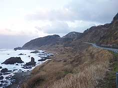 ![]() 青空がのぞく外浦の風景 | ![]() 波も高く、風強し | ![]() 木の浦手前の風景 |