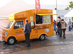 ![]() 海鮮まるごと大鍋 | ![]() 金券販売場所でラリーパンフを配布いただく | ![]() 移動販売車も集結 |