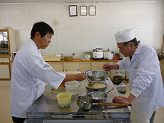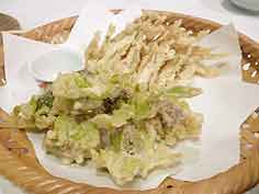 ![]() 講習会の様子 | ![]() 交流会の料理 | ![]() 揚げたての天ぷらも |
