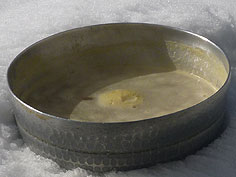 ![]() 新江さんと一緒に料理を作る綿さん | ![]() 創作料理の一つ茶碗蒸し | ![]() 雪で冷やす |